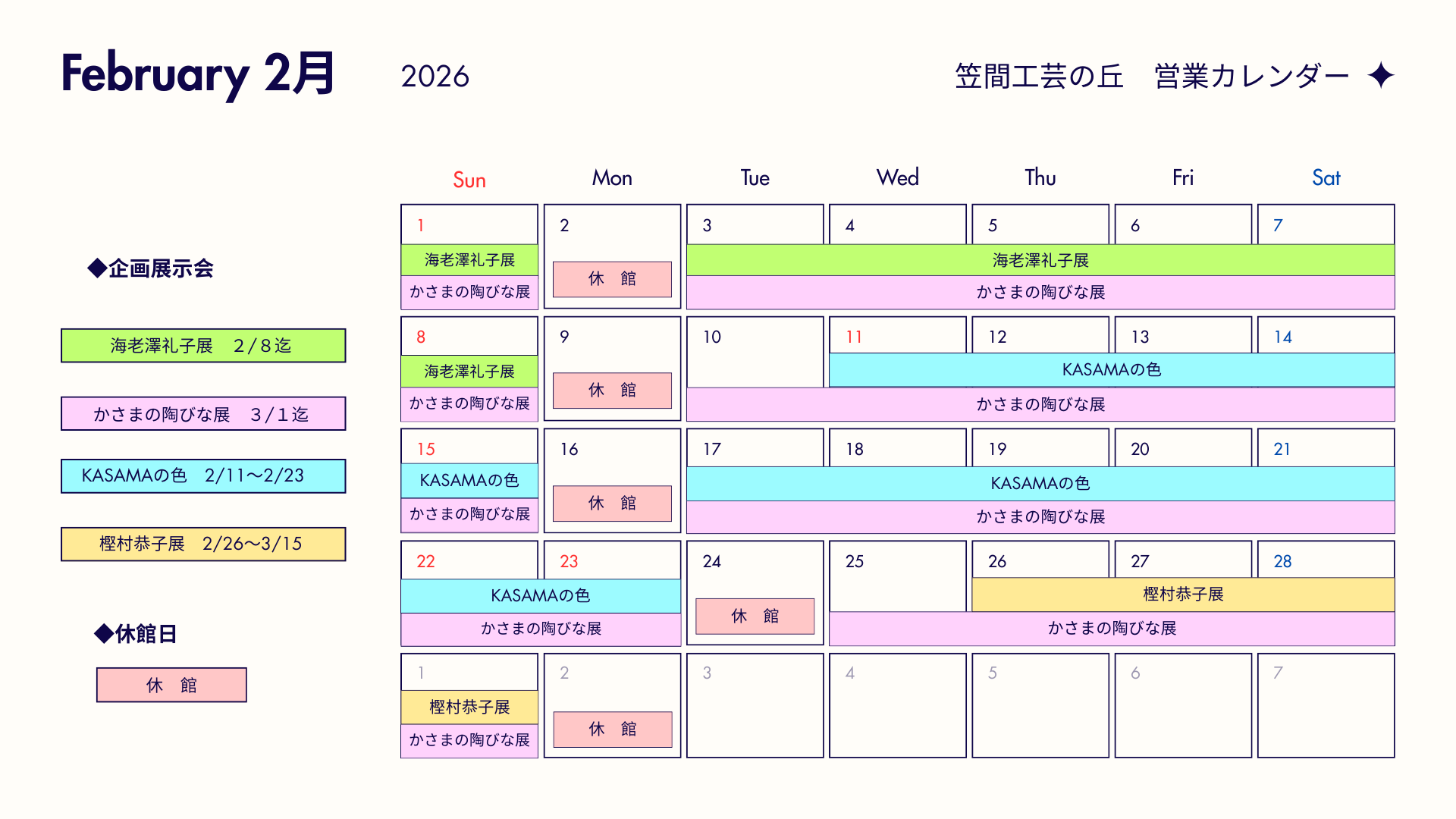 【2026年2月営業カレンダーはこちら】