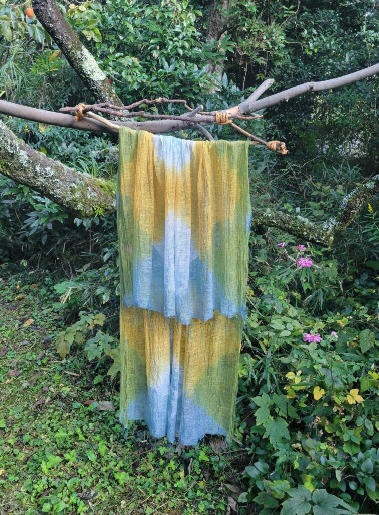 ・佐川麻穂氏:草木染めによるストールやバッグなど、温かみのある染織作品